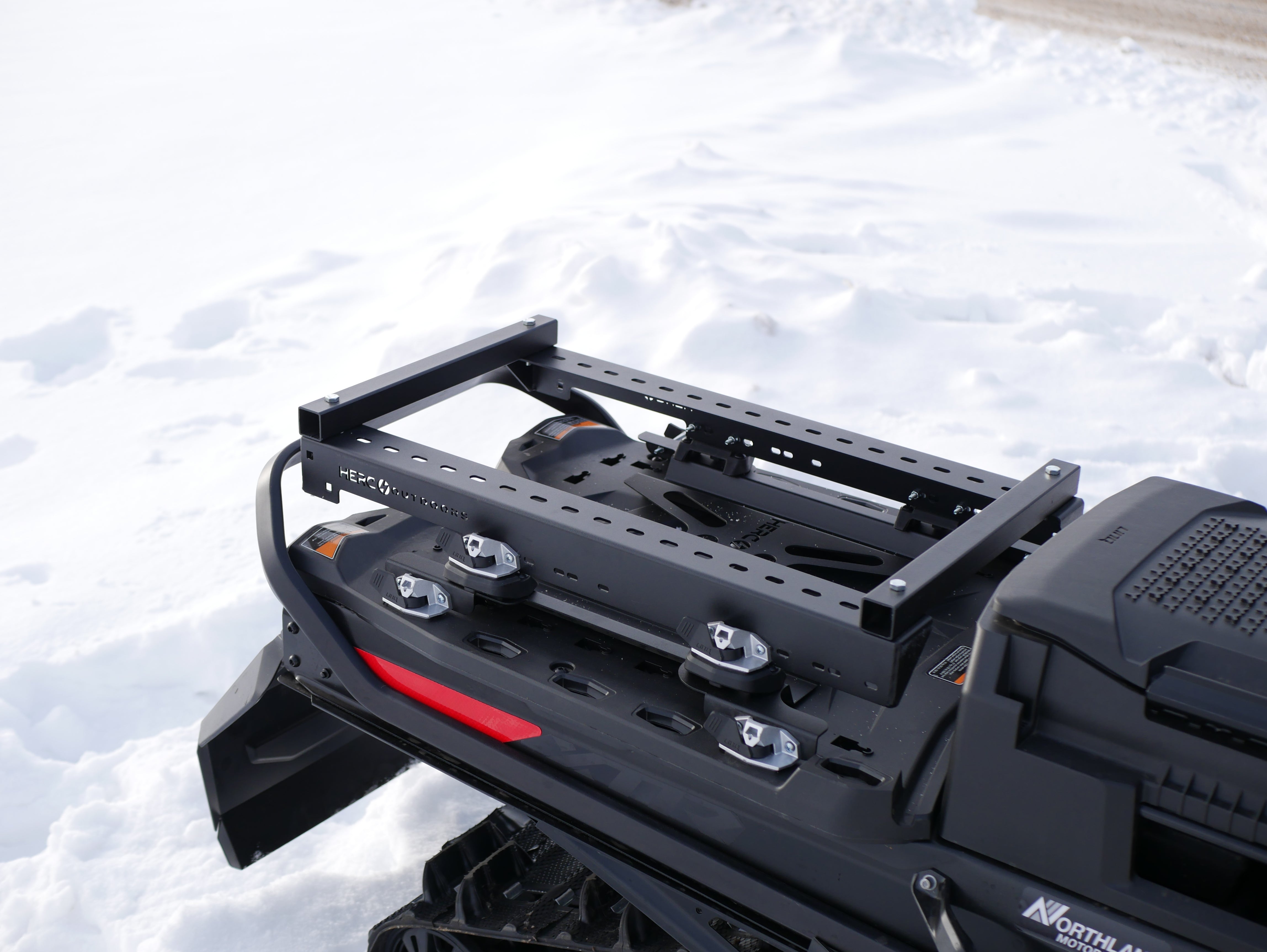 The Herc Outdoors Sled Interface Kit is the foundation for turning your snowmobile into a true hauling machine. Designed to mount securely to the rear tunnel of most Ski-Doo snowmobiles, this heavy-duty interface creates a strong, adaptable platform for mounting cargo racks, gear carriers, and accessories.