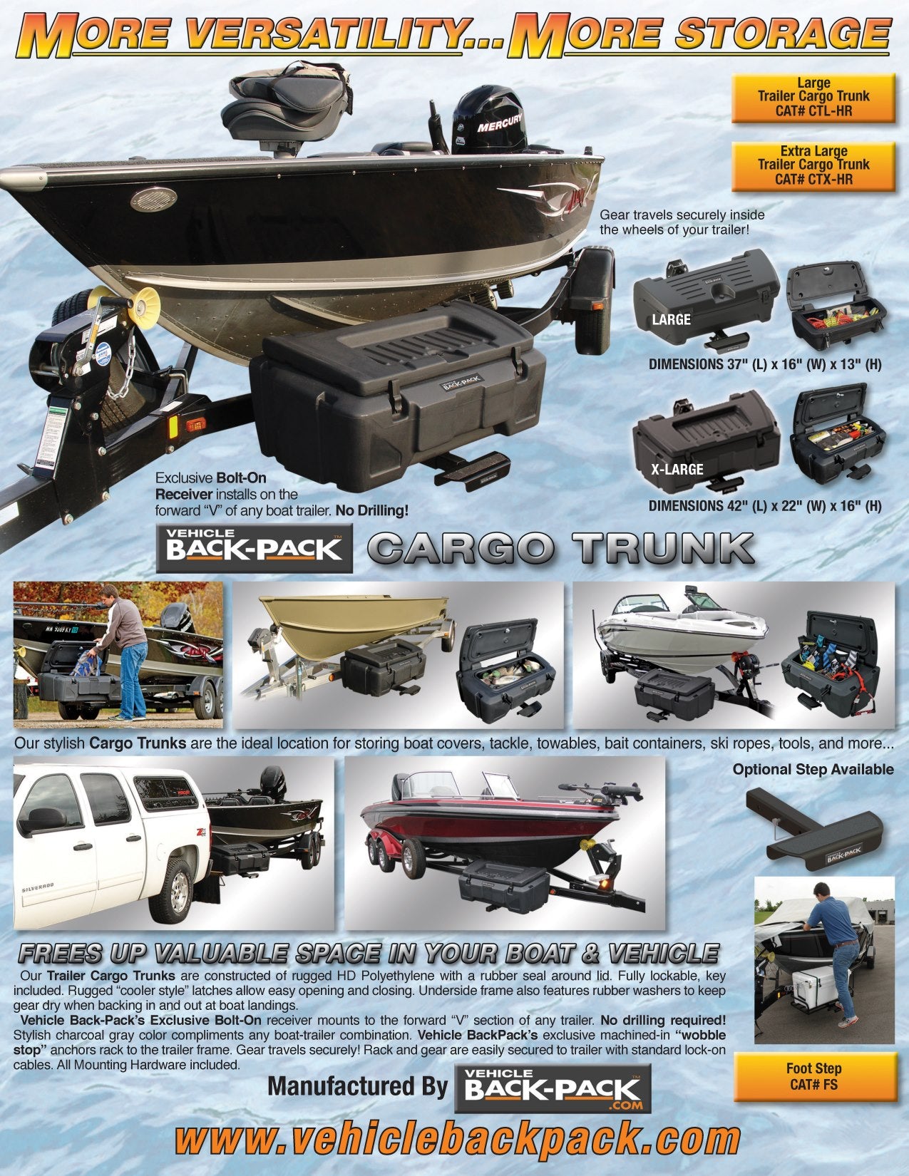 - Rugged rotomolded cargo trunk
